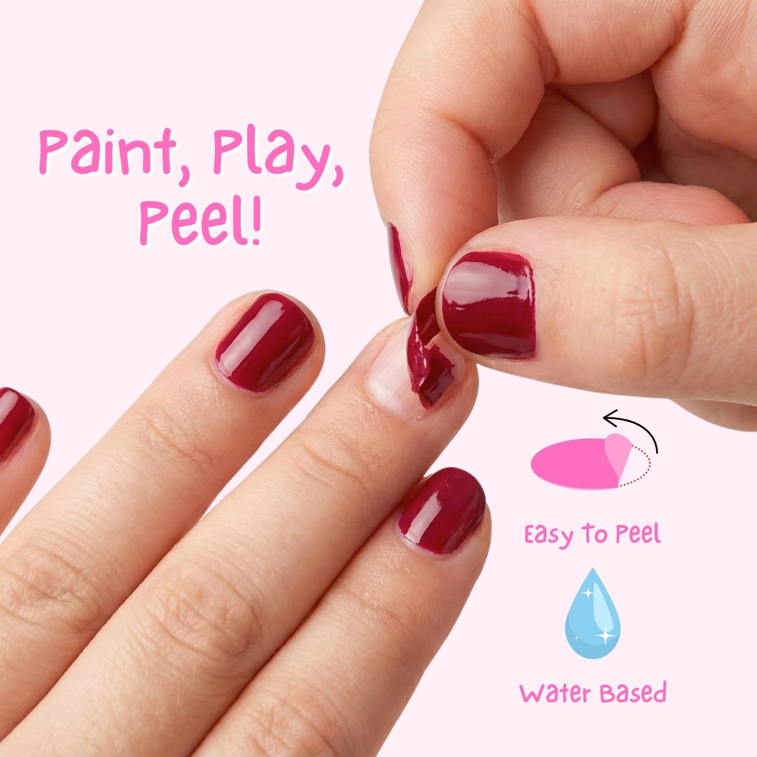 Apply the nail polish to clean the nails and let it dry. When your child is ready for a change, simply peel it off—no need for nail polish remover!
