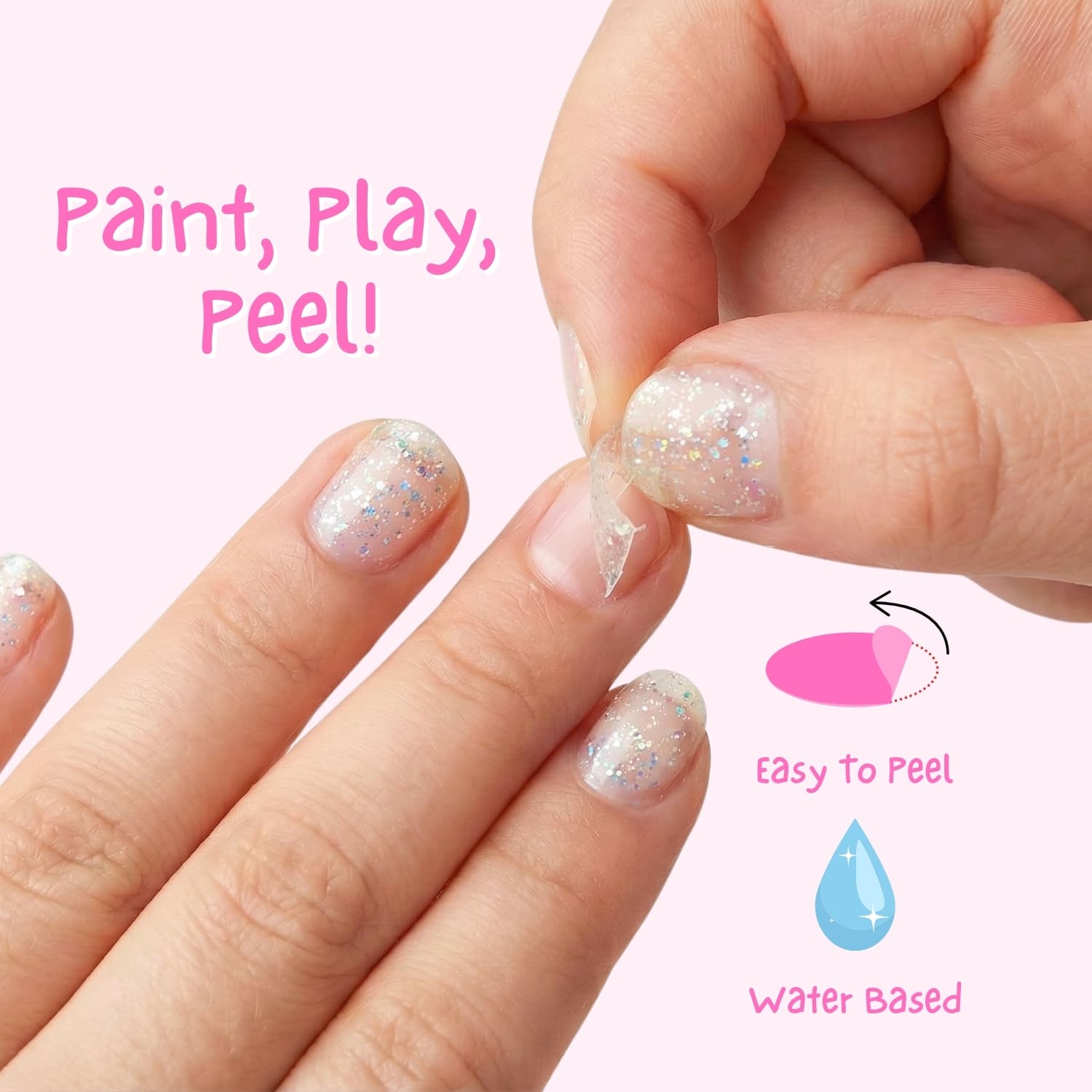 Apply the nail polish to clean the nails and let it dry. When your child is ready for a change, simply peel it off—no need for nail polish remover!